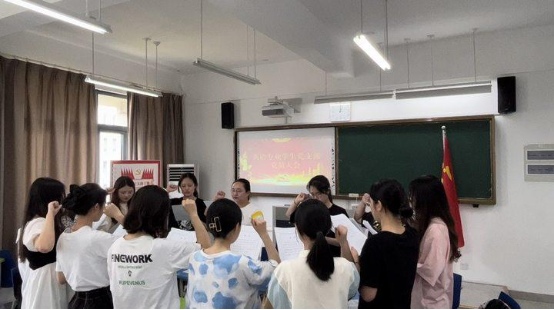 6月12日,英语师范专业学生党支部以“党员最后一课”为主题,举行了本月的党日活动,希望毕业生党员在今后的生活、工作实践中能够不忘初心,牢记使命,继续践行党员责任担当。活动过程中,支部书记吴小慧表示了对毕业生党员未来的美好祝愿以及对于未来规划的鞭策提醒。当天恰逢所有学生党员入党纪念日,在特别的日子里,党员们一起过政治生日,收获专属政治贺卡,并在便利贴上写下自己的愿望,将所有人的愿望拼凑成党徽的形状,充分体现了全体党员坚定不移听党话跟党走的决心。