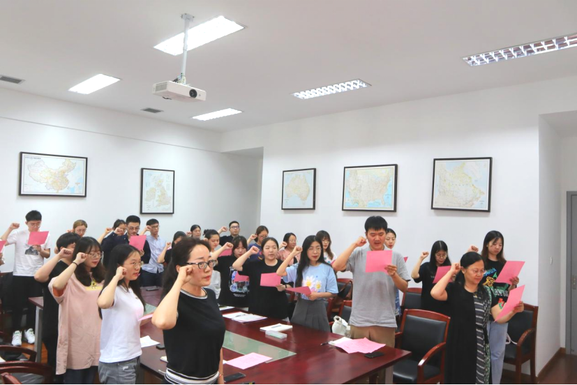 最后,面对鲜红的党旗,师生党员在党总支书记周彩英的带领下,庄严地举起了右手,郑重地向党宣读了自己的誓言:“我志愿加入中国共产党,拥护党的纲领,遵守党的章程,履行党员义务,执行党的决定,严守党的纪律,保守党的秘密,对党忠诚,积极工作,为共产主义奋斗终身,随时准备为党和人民牺牲一切,永不叛党”。党员同志们神情庄重、精神饱满、声音铿锵、句句千钧,再一次接受了心灵的洗礼,进一步坚定了理想信念和初心使命。