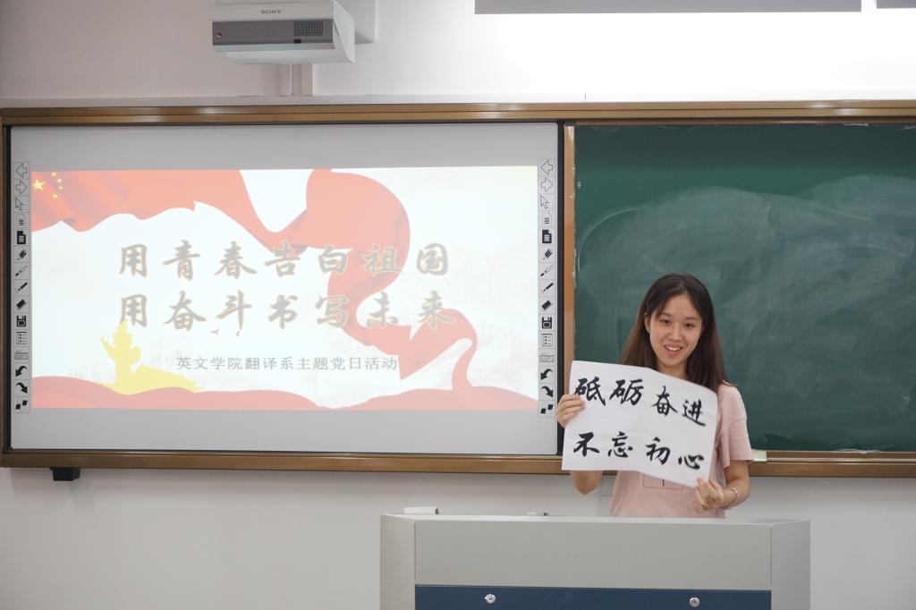 为庆祝中华人民共和国成立70周年,激励学生党员增强家国情怀,激发学生党员的责任担当。近日,永利娱城app翻译系学生党支部开展“青春告白祖国 奋斗书写未来”主题党日活动,展示新时代青年与国家共奋进的爱国情和报国志。