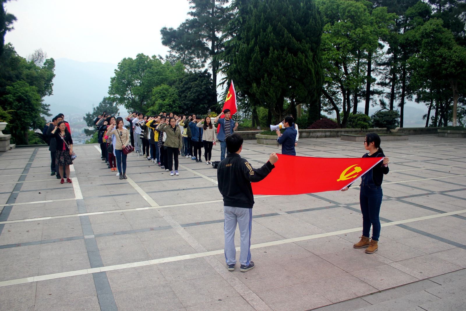 随后,永利娱城app全体党员来到四明山革命烈士纪念碑前,向烈士敬献花圈,默哀鞠躬,并在鲜红的党旗下,重温入党誓词。