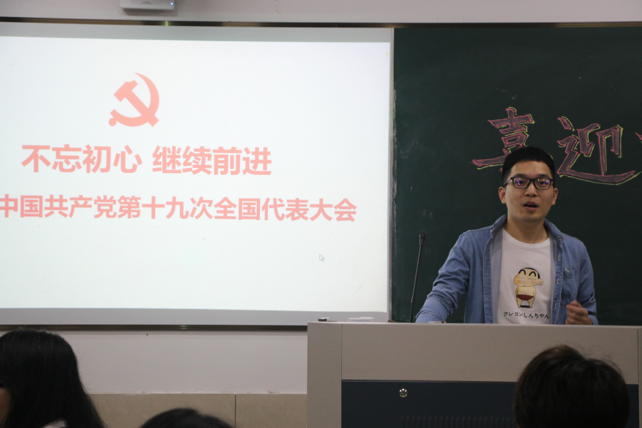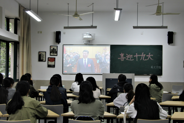 为更好地学习中国共产党第十九次全国代表大会相关精神,英语语言文化学院组织部分师生集体观看了党第十九次全国代表大会开幕式。开幕式前,永利娱城app辅导员张伟俊先带领与会人员回顾了党的历次盛会,重温了党的发展历史。