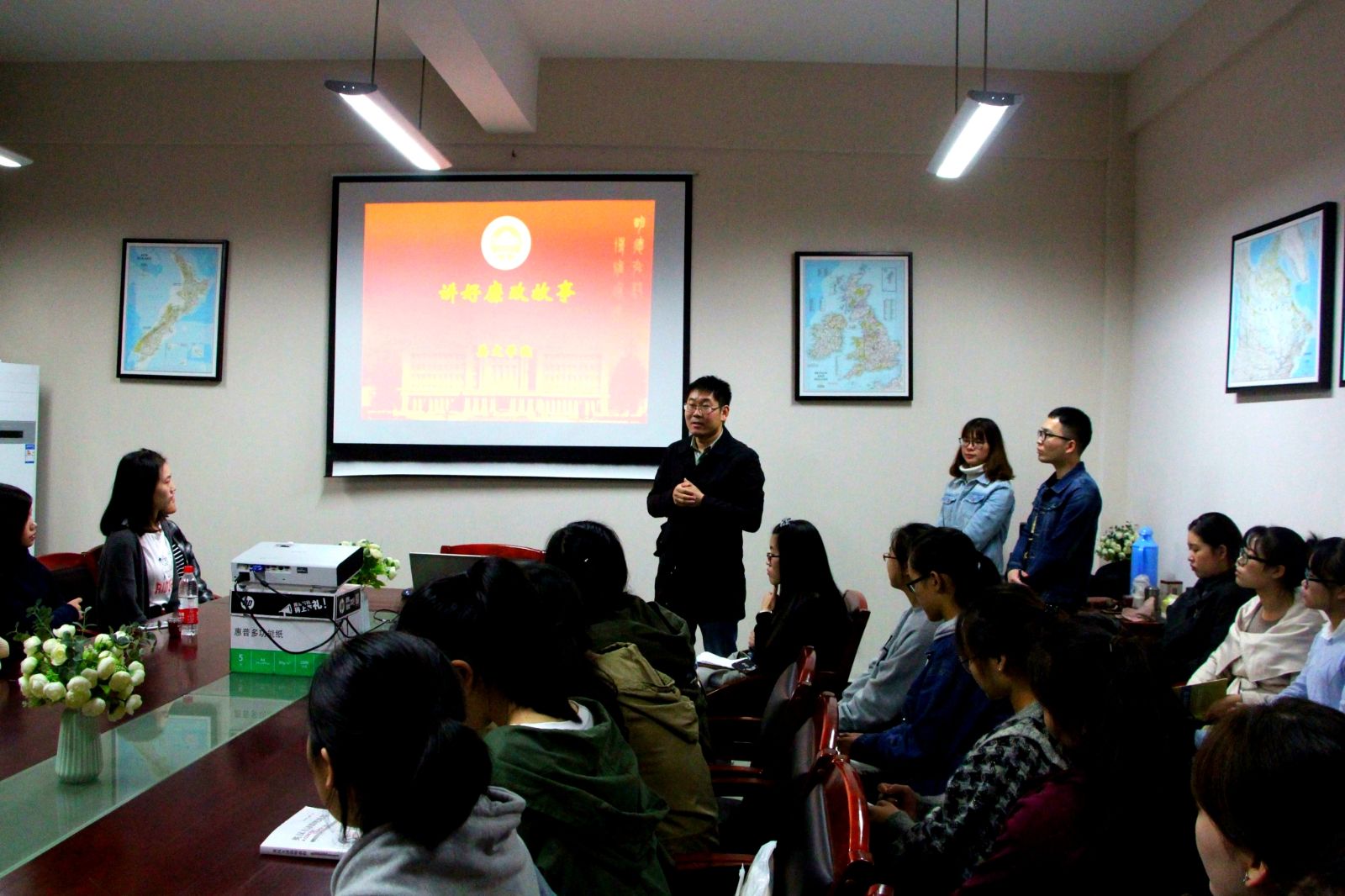 英语语言文化学院党总支精心部署和安排学习宣传贯彻党的十九大精神系列活动,将党政领导讲党课和学习党的十九大紧密结合,书记领导带头讲,将党的十九大精神“教起来”。