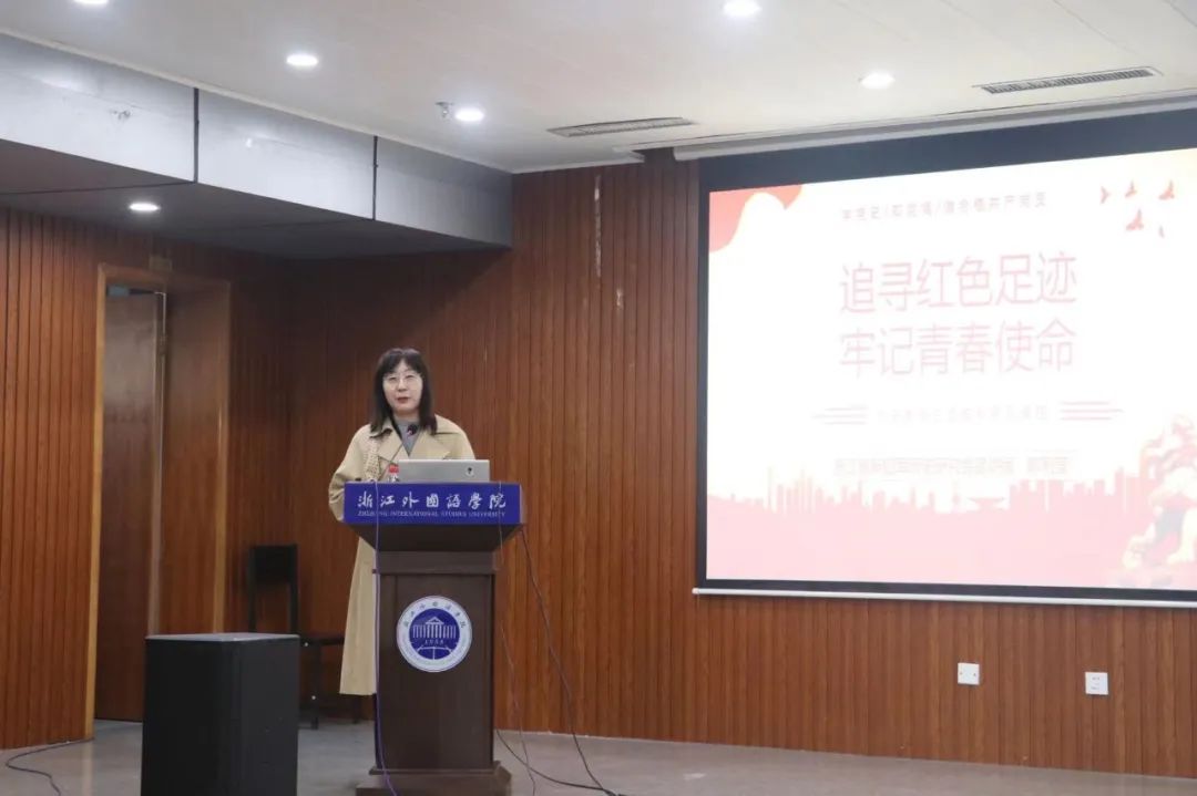思政德育特级教师、新四军宣讲团党史故事组组长、上城区社科联讲师团红色讲师陈利莹受邀为全体党员和入党积极分子讲授党课《追寻红色足迹牢记青春使命》。通过一个个鲜活的党员光辉事迹,大家更加明确了自己身上肩负的青春使命,进一步坚定了共产主义信仰。