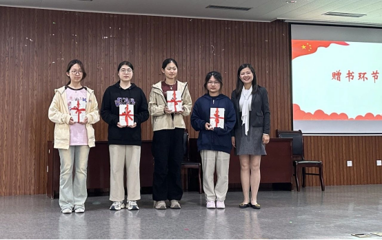张豫晋向入党积极分子代表赠送《习近平谈治国理政》第四卷英文版,大家在严抓理论学习时不忘提升专业能力。