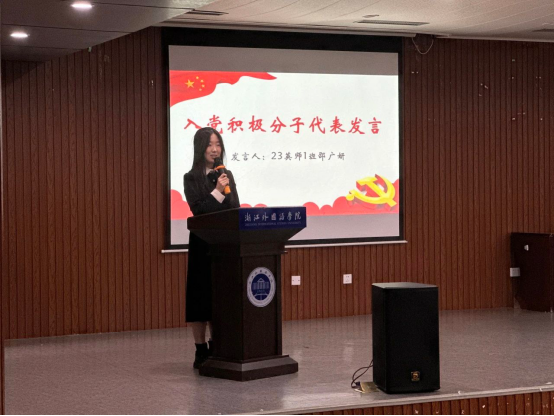 入党积极分子代表邵广妍从自身经历出发,呼吁全体学员通过培训提升党性修养,从点滴做起,从身边做起,发挥自己的力量为他人服务,使个人奋斗方向始终与党和国家的发展目标同向同行。