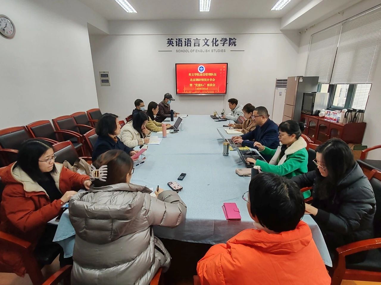近日,永利娱城app党政领导班子、新任教学主管、科研主管以及学院教学督导等一行10余人赴北京大学外国语学院、北京语言大学信息科学学院等单位交流学习,深入课程听课,开展党建、科研、教学等座谈交流。12月13日,学院召开党建“E+”圆桌派座谈会,进一步分享交流了此次北京调研学习之行的经验和感受。学院党政领导班子全体成员,各基层组织的学科专业负责人、教学主管、科研主管等参加了分享会。