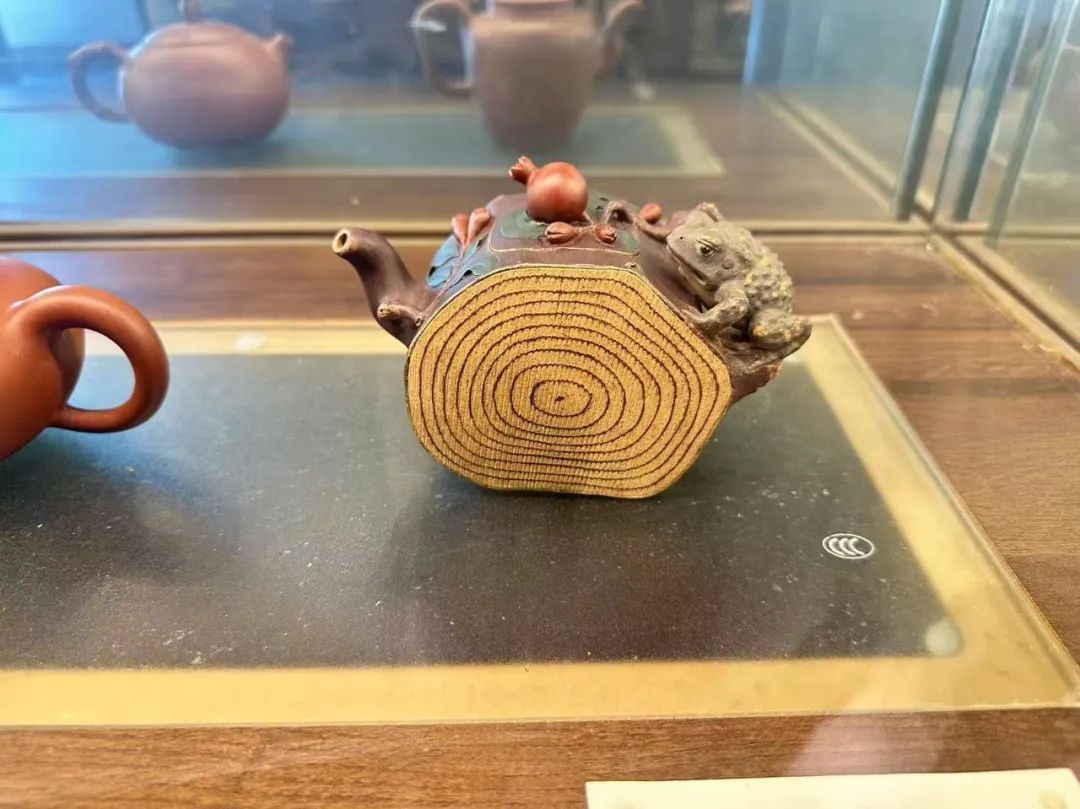 实践首站,团队来到蒋氏紫砂壶陶艺馆。馆内一件件造型各异、气韵生动的紫砂艺术品,宛如一座紫砂艺术的微型博物馆。从古朴典雅的传统光素器,到精雕细琢的花货、筋纹器,琳琅满目的展品诉说着紫砂泥千变万化的艺术可能性和深厚文化积淀。蒋蓉的牡丹壶、蒋淦春的梅桩壶等作品,更让成员们直观感受紫砂艺术的传承脉络,深刻体会“一团泥,七十二道工,千度窑火淬匠心”的底蕴。