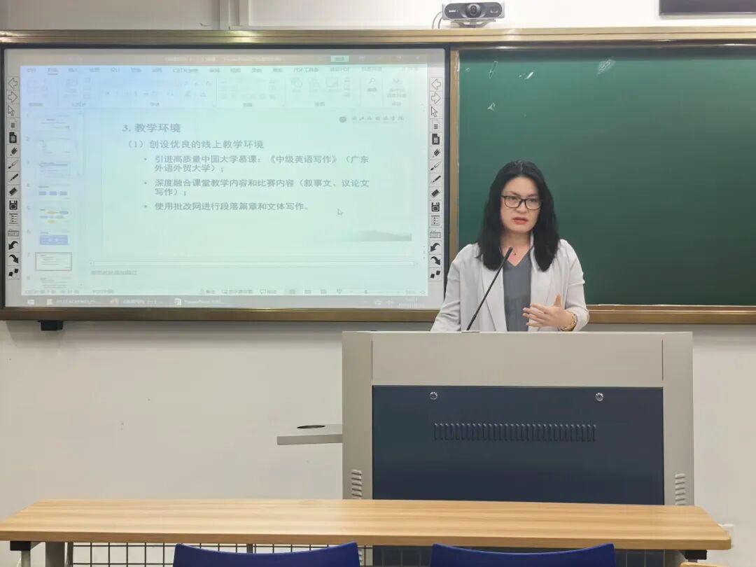 永利娱城app院长邢富坤、学术副院长赵歆、外语教育系学科专业负责人常俊跃(线上)、教学督导陆海霞等参加了活动,校教师教学发展中心、教学检测评估中心副主任陶伟莅临指导,共同进行了现场点评。
