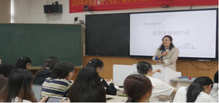6月5日下午,2022级英语师范1班和2班全体同学在英语系主任黄艳春老师的带领下前往余杭区海辰中学进行教育见习。教务主任钟丽丽老师和英语组组长秦丽静老师参加。