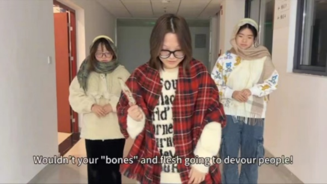 22级商务英语2班的一等奖作品《还珠格格》令人眼前一亮。林曦、潘婕妤、胡心怡和石昕逸四位同学选取了《还珠格格》中的四个经典场景进行拍摄,通过视频将古韵之美与现代创意完美结合。在这个过程中,小组成员不仅得以锻炼视频构想的能力,还提高了英文台词翻译的准确性。组员在创作过程中充分发挥了各自的想象力,以新奇的角度和充满创意的想法呈现故事情节,使得最后呈现的作品生动有趣。