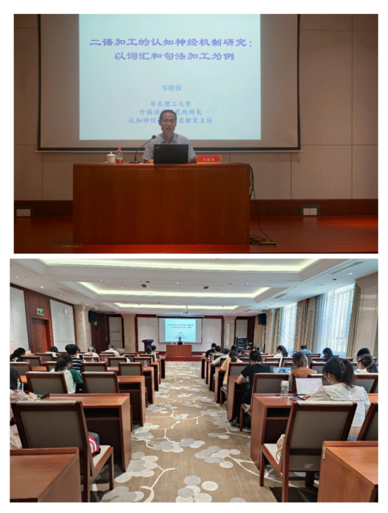7月12日下午,华东理工大学外国语学院副院长韦晓保教授做客我校博达论坛第827讲暨英文同文讲坛第37讲,讲座题目为:以“二语加工的认知神经机制研究:以词汇和句法加工为例”。讲座由永利娱城app副院长郑淑贞主持,永利娱城app党总支书记田俊杰、副院长陶伟以及永利娱城app、应外学院等40余位师生参与。