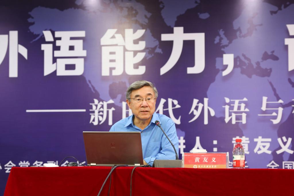 “翻译,不再是单纯的学术活动。”“时代特点、中国的国际位置让翻译成为建立中国话语体系的重要媒介。”“翻译助力中国参与全球治理。”台上认真讲解、台下专注凝神,“翻译”的魅力将大家汇聚于博文堂二楼报告厅。近日,中国外文出版发行事业局原副局长兼总编辑、中国互联网新闻中心主任,中国译协副会长、中国翻译研究院副院长、全国翻译资格(水平)考试英语专家委员会主任、全国翻译系列高级职称任职资格评审委员会主任、全国翻译研究生专业学位教学指导委员会主任委员黄友义教授应邀作客德雅讲堂第30讲,作了题为“增强外语能力,讲好中国故事——新时代外语与翻译的新作为”的专题讲座。校党委副书记赵文波在主持时对黄友义教授进行了介绍并表示感谢,他强调,在新形势下,尤其需要讲好中国故事,传播好中国声音,向世界展现一个真实的中国、立体的中国、全面的中国。