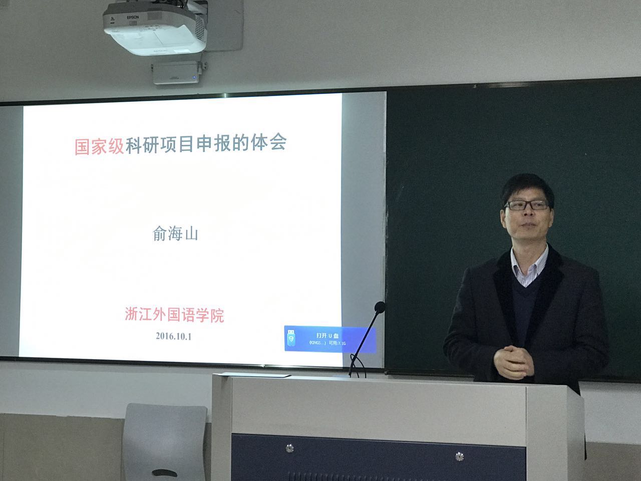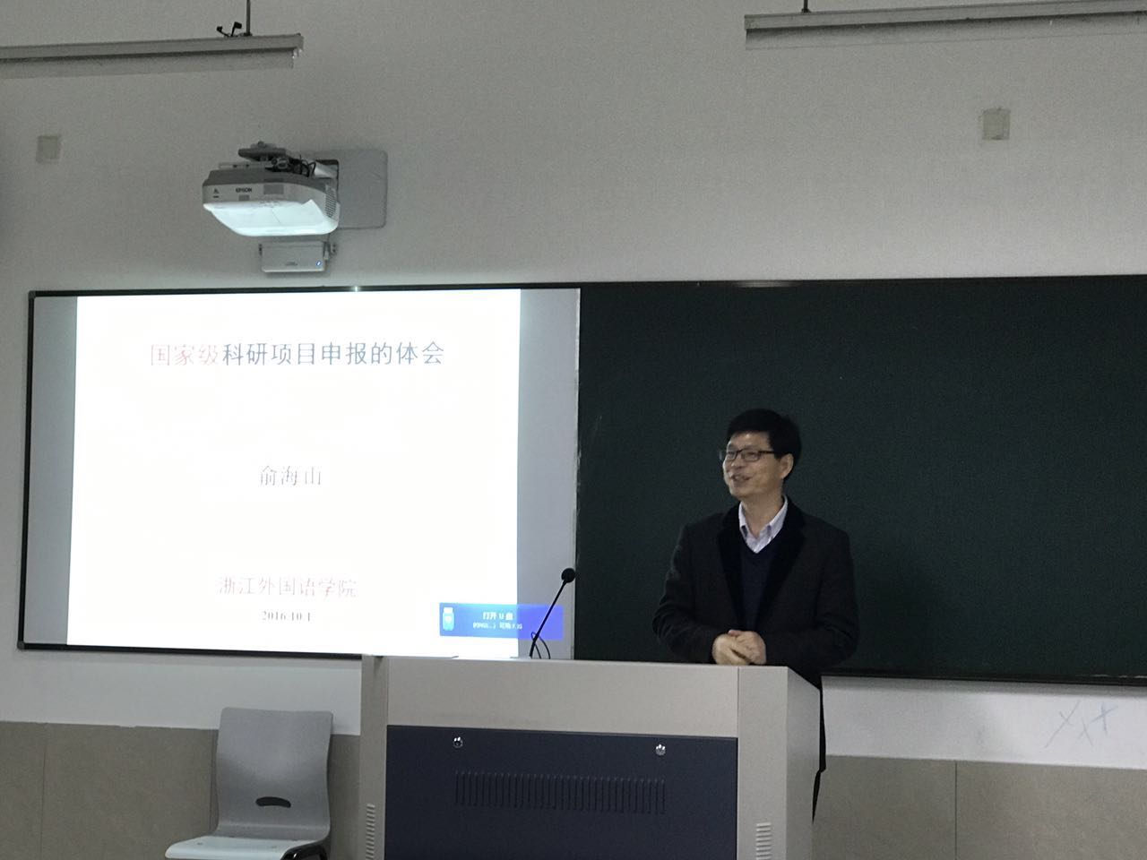 俞海山教授结合自己经济学研究经历和成功申报多项国家级基金项目的经验,为大家讲解了申报经验和体会。俞处长首先指出,科研对一名大学教师的重要性,而成功申请到国家级项目是大学教师在科研取得进步的重要保障和体现。接着,俞处长特别强调“选题”的重要性,好的选题是申报成功的一半,他结合自己多年的科研心得详细地说明如何让选题具有创新性。
