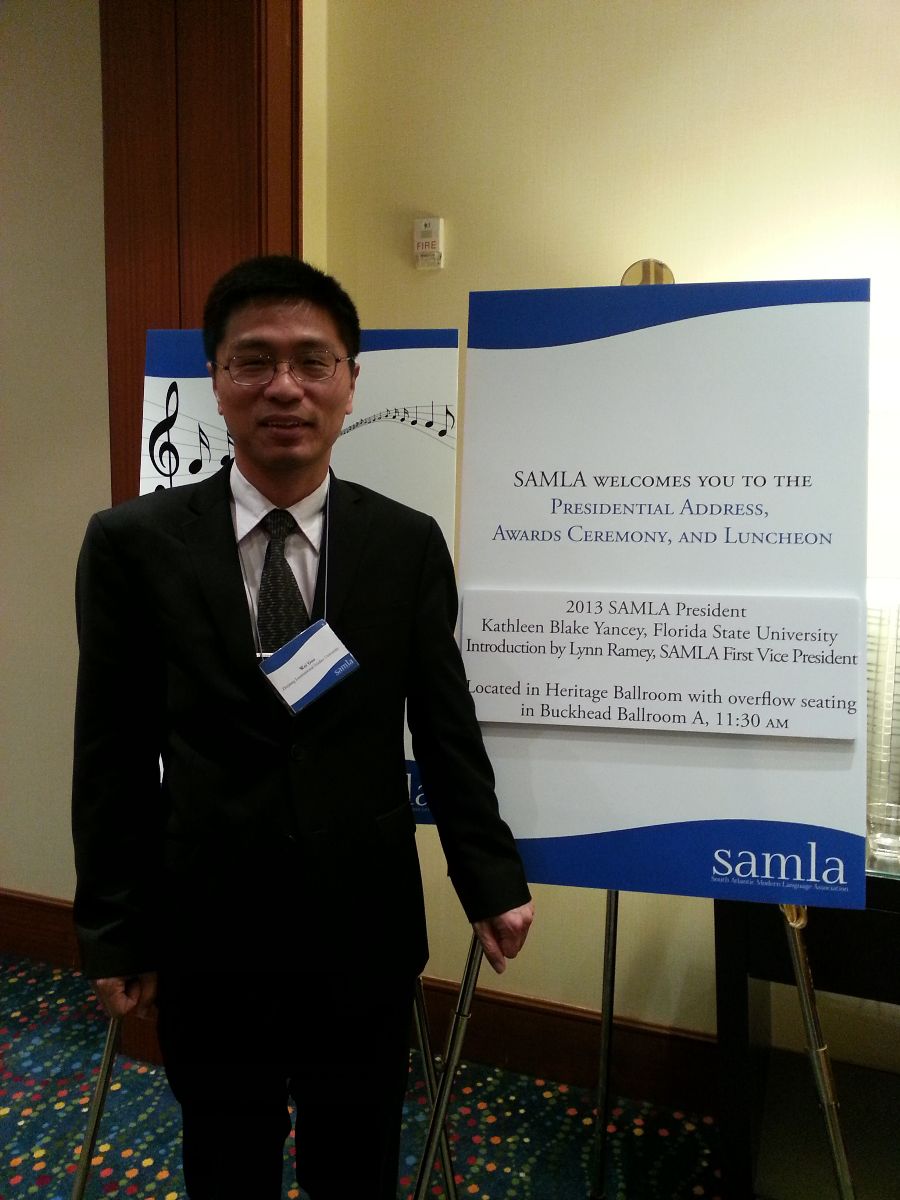 2013年11月7日到10日,美国南大西洋现代语言研究会(SAMLA)年会在亚特兰大召开。本次会议以“文化,情景,意象,文本”为主题。与会学者针对创造性写作,语言,修辞,电影和文学等专题进行了研讨。