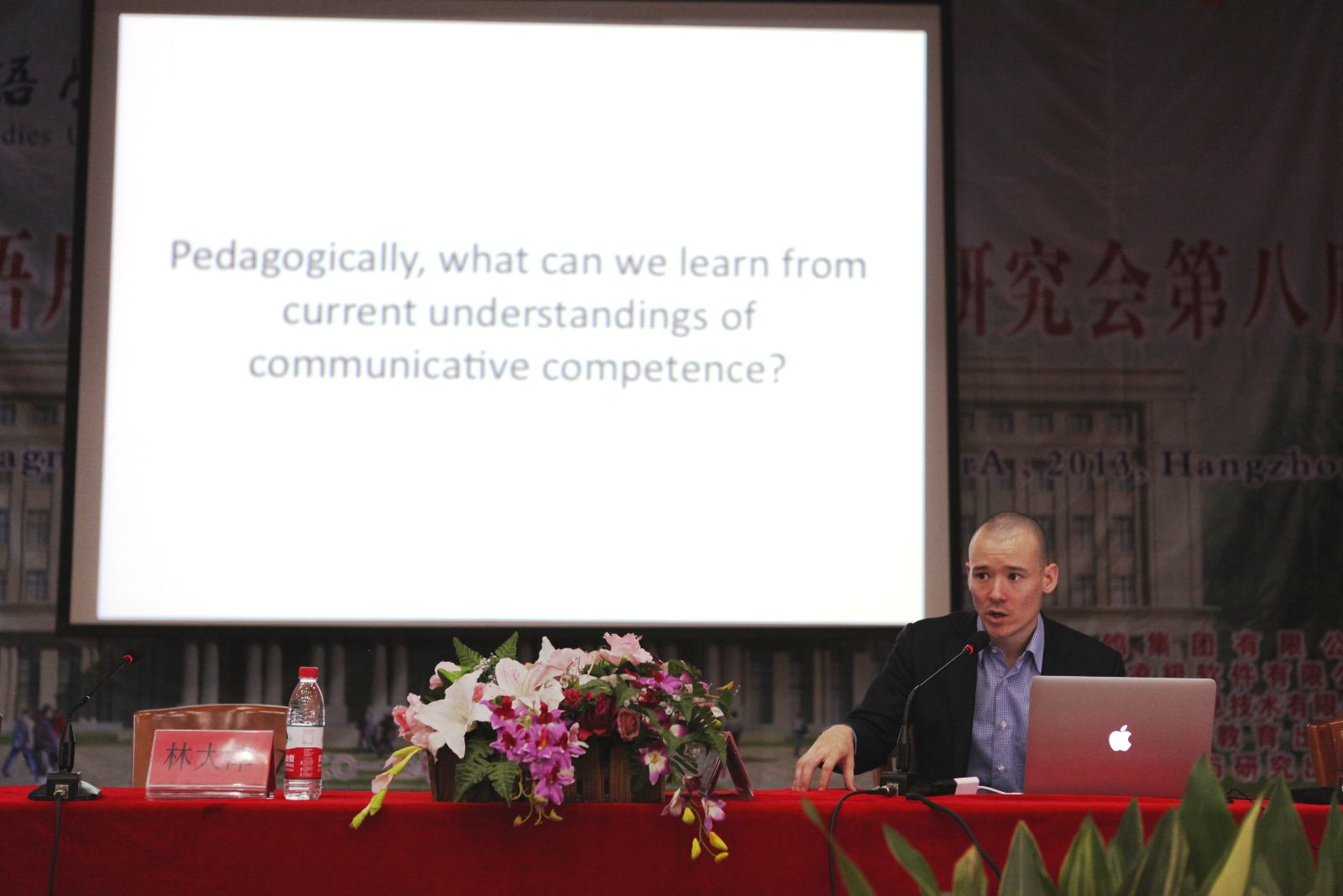 21日上午,第十三届全国语用学研讨会暨第八届中国语用学研究会年会开幕式在文三校区小礼堂举行。中国语用学研究会会长何自然教授致大会开幕辞,中国语用学研究会副会长、校长洪岗教授致欢迎辞。英语语言文化学院副院长姚明发教授主持开幕式。