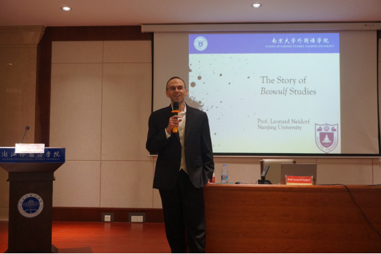作为国际《贝奥武夫》研究国际权威专家,Neidorf教授首先介绍了迄今为止《贝奥武夫》研究所取得的成果,然后对19-20世纪的《贝奥武夫》研究情况进行了简要回溯,重点介绍了20世纪《贝奥武夫》研究领域的几位知名学者及其发表的重要成果。值得一提的是,Neidorf教授将20世纪的《贝奥武夫》研究概括为两个历史阶段,第一阶段从30年代到70年代,称为“新共识”派,70年代到世纪末为“怀疑的一代”。Neidorf教授将21世纪的《贝奥武夫》研究界定为“理性复兴派”,而他自己就属于这个研究阵营。接下来,Neidorf教授与观众详细分享了自己长达十多年的《贝奥武夫》研究及其产生的国际影响。Neidorf教授的《贝奥武夫》研究主要植根于语言层面的研究,大致可以概括为以下几个方面:词汇学研究,历史语义学研究,音律研究,命名研究,文本批评,比较文学以及数字人文。值得一提的是,Neidorf教授的北美科研团队在数字人文领域的研究成果产生了广泛的国际影响,被《卫报》、《泰晤士报》、《史密森尼》及《波士顿环球报》竞相报道。讲座最后,Neidorf教授简要分享了其最新的研究成果。Neidorf教授的讲座提纲挈领,精彩纷呈,他以21世纪的学术视野,将看似晦涩难懂、令人生畏的古英语诗歌讲得深入浅出、生动有趣。之后主持人对Neidorf教授的讲座进行了总结点评,在问答环节,Neidorf教授与老师们进行了长达半小时的热烈讨论。