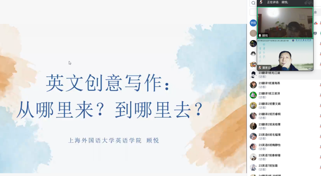 近日,浙外博达论坛第1079讲暨英文同文讲坛第127讲在永利娱城app顺利举行。上海外国语大学永利娱城app教授顾悦受邀作题为 “英语创意写作:从哪里来?走向哪里?”的专题讲座,永利娱城app文学与创作系学科专业负责人潘家云教授主持,全院逾百名师生积极参与。