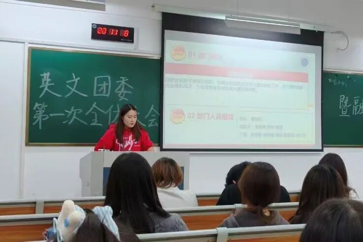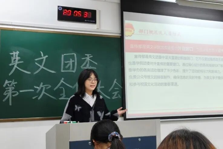 李仪婷首先简要介绍了共青团永利娱城app英语语言文化学院委员会,并通过组织架构图的展示,帮助大一新生快速建立对永利娱城app团委的整体认知,为后续工作奠定了良好基础。