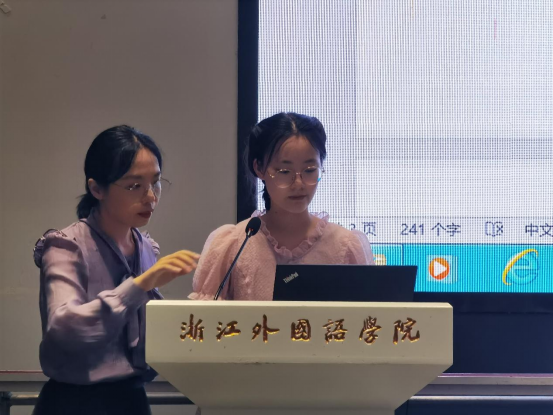 郭安琪和学生卢慧敏为同学们详细演示了校友邦系统的使用要求、操作方法和成绩评定方式,并解答了同学们提出的其他问题。
