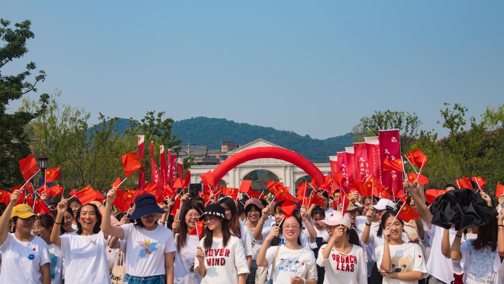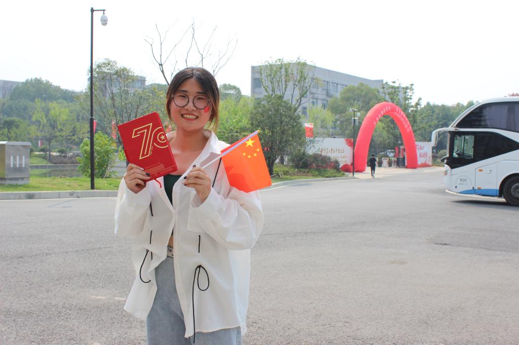 随后,主持人一声“同学们,冲啊!”的呐喊之后,奔跑即刻开始。党总支负责人带领同学们,同学们挥舞着手中的小红旗,以“英文”之名,用奔跑告白祖国。18翻译2班张月欢表示,在新中国成立70周年之际,用脚步丈量大地,用行动告白祖国,非常有意义;17商英3班卫雁娜表示,时代接力,在奔跑中看到祖国的强盛,我们英文人以自己的实际行动彰显了爱国热情。