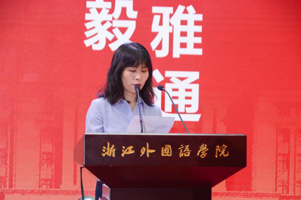 接下来,是最受2019届毕业生欢迎的教师代表樊维娜老师发言。樊维娜老师用自己的亲身经历鼓励毕业生们继续前进,以智慧和勇气拥抱未来。老师以一个朋友的身份和毕业生们探讨了关于未来的问题并给出了以下两点建议:一,接受你的弱点。老师谈到,人的长处和短处就像一枚硬币的两面,相互依存、相互发展。认识到自身的弱点能够帮助我们了解到一个真实的自己。二,依靠你自己。自力更生说起来容易做起来难,要把自己塑造成一个强大的存在,将未来的幸福把握在自己手上。最后,老师也为毕业生送上了诚挚的祝福:当你在未来面临困难和挑战时,要有足够的勇气去度过难关。你可能会流泪,感到痛苦和折磨,尝到挫折的苦涩,但是你永远不应该放弃“生命是美好的”这一信念。