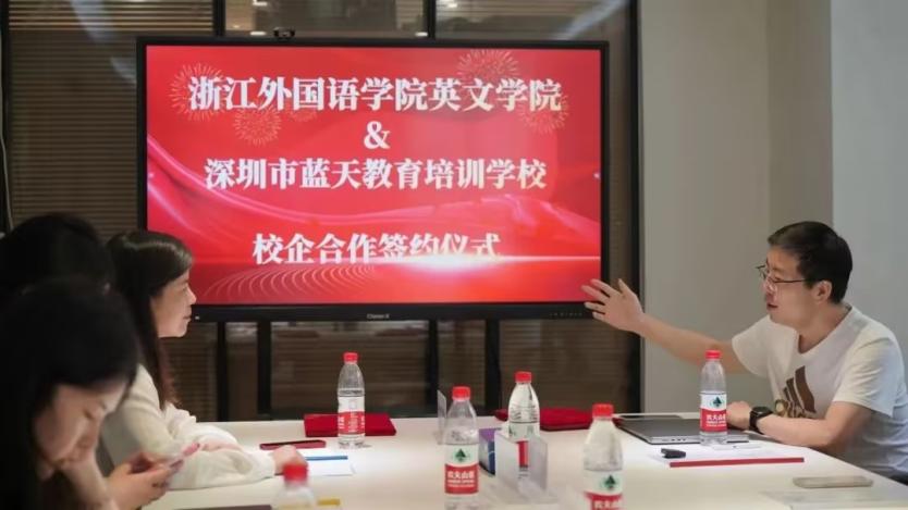 张豫晋代表学校与深圳市蓝天教育培训学校签订了《关于合作建立永利娱城app国际化实践地的协议》。