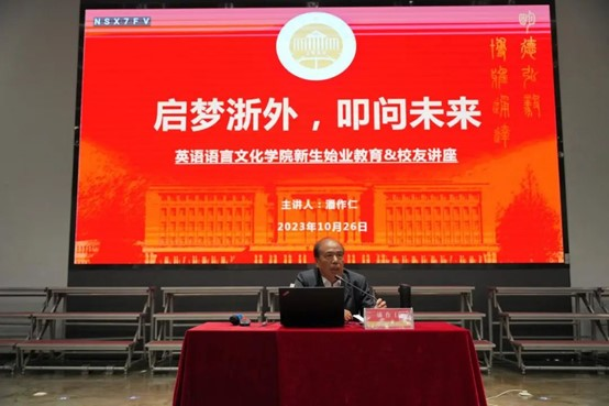 10月26日晚,永利娱城app(原浙江教育学院)1986届英语专业校友、浙江景宁县党校原党委书记、省“红船精神”优秀五老宣讲员、永利娱城app荣耀校友潘作仁在望院C116为永利娱城app23级全体新生开展了题为“启梦浙外,叩响未来——争做时代有为青年”的理想信念教育。
