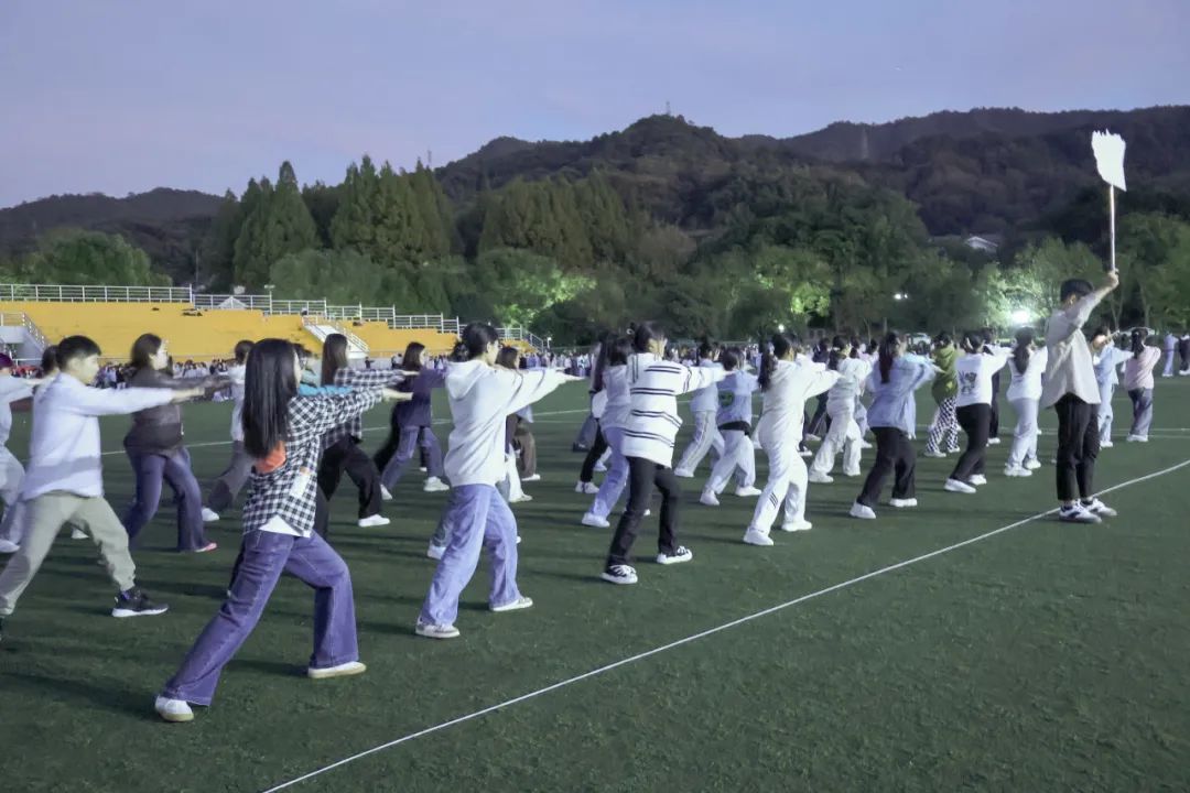 朋友,还记得,我们曾一起练习的太极拳吗?你看,迎着日暮霞光,太极拳方阵的选手们正气沉丹田,缓缓起势。力出于骨,劲蓄于筋,舒缓之中扬武术精气,方寸之间显太极魅力,一招一式、一起一落间尽展英文学子勃发雄姿。