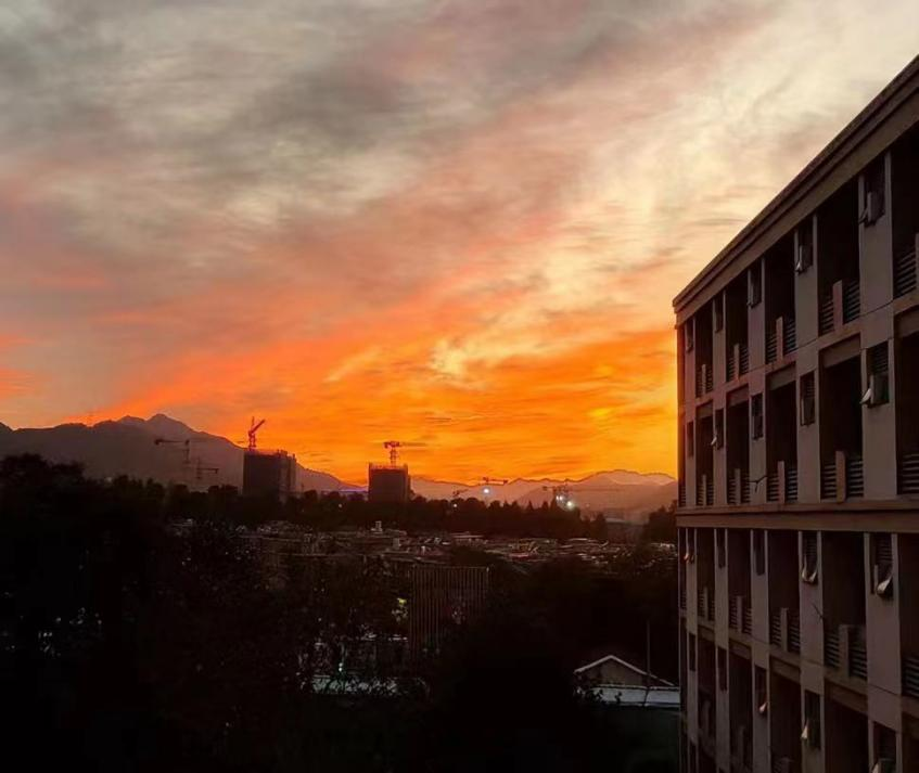 进入大学以后,我参加了各种活动,比如学生志愿者、组织团建、观看女子足球赛……在这些活动中我收获了友谊,大学生活变得多姿多彩!记得结束了满课的一天后,经过楼道间,一抹亮红色吸引了我的目光。转头一看,红黄的夕阳映入眼帘。朋友圈里纷纷跳出夕阳的照片。不同地点,不同时间,不同视角,大家交流着夕阳的美。这成为了我在浙外十分难忘的瞬间。