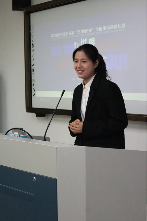 祝贺以上选手!其中,获得本次特等奖的两位选手将代表我校参加“21世纪杯”全国英语演讲比赛浙江省省赛。再次祝贺她们!