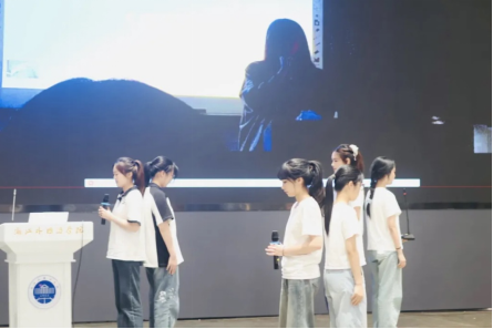 在“才艺展示”环节,各团支部团员青年们展示自主编排的精彩节目,以合唱、朗诵、舞蹈、情景剧等形式诠释着对主题的理解。23英师4班的合唱表演《剩下的盛夏》将团支部的点滴回忆娓娓道来,包含着成员们对彼此的深厚情谊,展现出团支部的团结与凝聚力。23英语7班的情景剧《追风逐梦》中的那句“我们都是追梦人”回荡在每个人心中,演绎出盛世之下青年人“有梦不觉天涯远,扬帆起航再出发”的斗势。