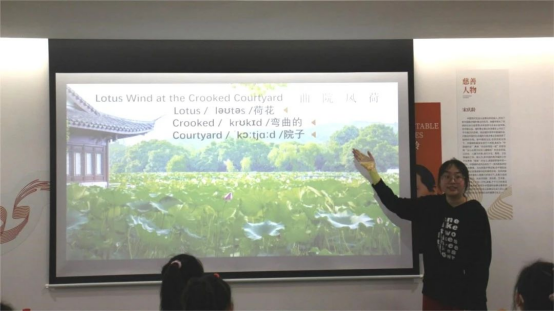 “What do you know about the Ten Views of West Lake?(关于西湖十景你们知道些什么?)”团队成员聚焦活动主题,精心设计了“相约西湖”英文讲解小课堂、英文歌曲互动教学等课程,围绕西湖十景,带领孩子们感受西湖文化,在中英文对比中领略双语文化差异和文化魅力,品读西湖文化特色;通过动画配音游戏让小朋友进一步理解英语语音语调的趣味,团队成员们在实践中也提高了对自己能力的认可,加深了对于专业学习的热情。“这次活动只有我一个大一学生,一开始我有一些担心,但随着实践的顺利开展,听小朋友们唱《We are the world》,教他们跳手势舞,都让我切实感受到了自己的能力,我也坚定了要学好英语的决心。”永利娱城app23翻译2班的李锡樱同学说。