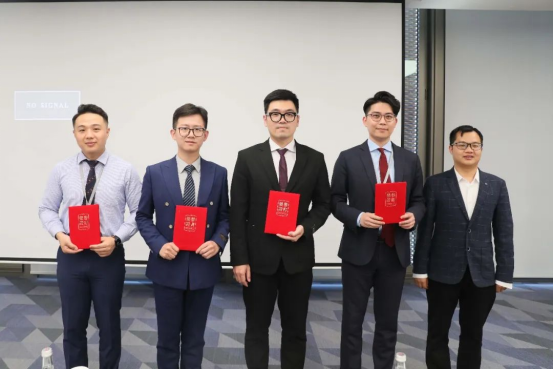 陶伟代表学院为谢宇、金桢杰等4人颁发企业导师聘书,为进一步深化双方协同育人、共同开发课程、建立实训基地等合作开好局。
