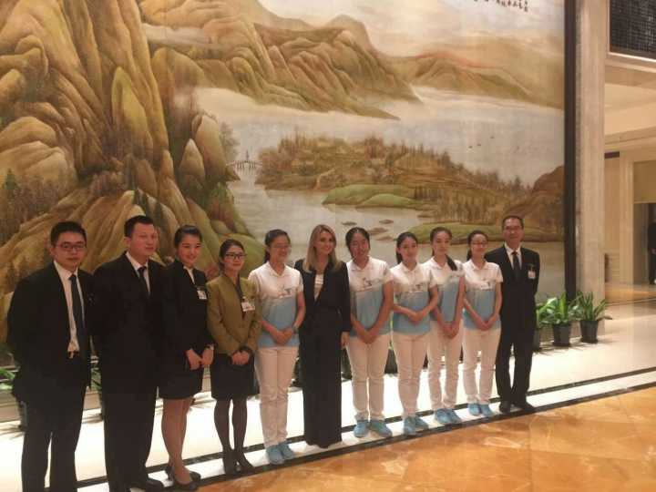 其实我是G20结束后才发现自己做了一件多么有意思的事,甚至回忆起来还有些不真实。我居然离世界那么近,看到IMF总裁拉加德从身边走过和他道一声“早上好”,和总统夫人握手,为入住的嘉宾分发会议资料,为他们提供翻译服务等等,这一切的一切都发生得那么自然,回想起来真的很幸福。感觉自己能参与到这么重大的活动中并献出自己小小的一份力量,真的很荣幸!原来付出是那么幸福。20天的志愿经历本以为会很漫长,却结束得意想不到得快,和一起搭档的安保人员,酒店工作者以及志愿者们都成了朋友,分别的时候是那么的不舍。最后感恩,因为是大家共同的努力才使得我们的工作顺利地完成了!