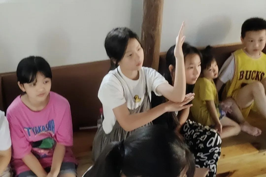 虽然疲惫,但似乎被欢笑冲淡。在山汀这个美丽的村庄,门外,当地村民忙着晒稻谷;屋内,小老师们忙着辅导小朋友。窗外时不时传来的鸟叫蝉鸣,一同见证此刻的美好。初次体验给小孩子们上亚运知识课,当讲到他们最爱的吉祥物时,每个小眼睛都放着光,那种求知的渴望让我第一次感受到为人师的快乐。
