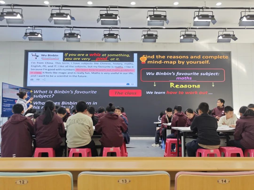 在主题为“My Favorite Subject”的公开课中,文华中学章莎娜老师带领文华中学的七年级学生示了一场精彩的模范英语课程。老师通过视听导入、情景设置、教具互动、小组交流等方式引导学生们学会流利表达情感与信息,还运用思维导图、英英释义、文化介绍等手段启发观课的英语师范生如何将专业知识融入课堂教学,激发了同学们对如何优化英语课堂教学的思考。