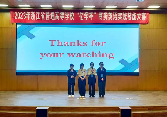 据悉,“亿学杯”商务英语实践技能大赛由浙江省商务英语协会主办,旨在促进浙江省普通高等学校商务英语及相关专业的建设,进一步深化产教融合、专创融合、校企合作,全面提升商务英语及相关专业大学生的实践能力与职业素养。