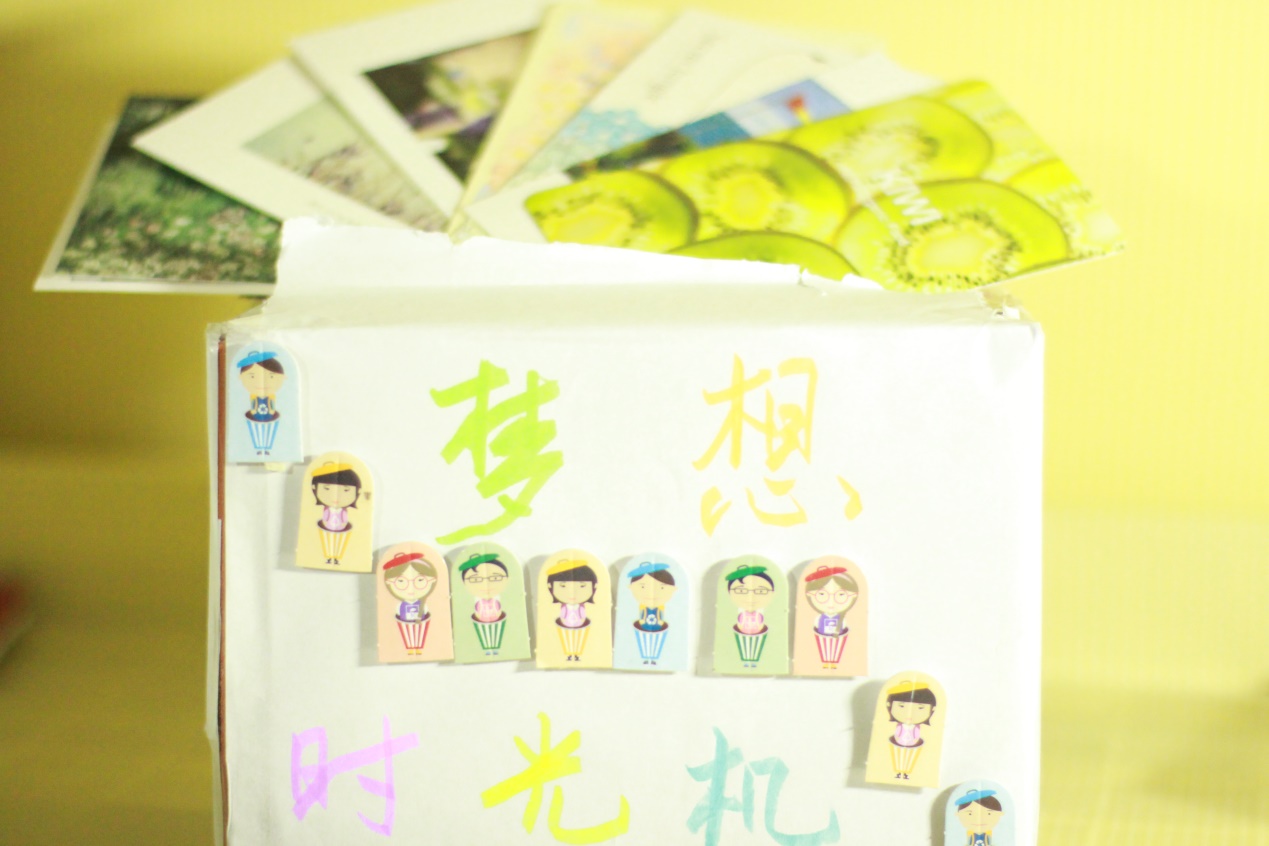 “学妹,你的明信片带了吗?把它放进梦想时光机里吧,它将在四年后与你再见!”