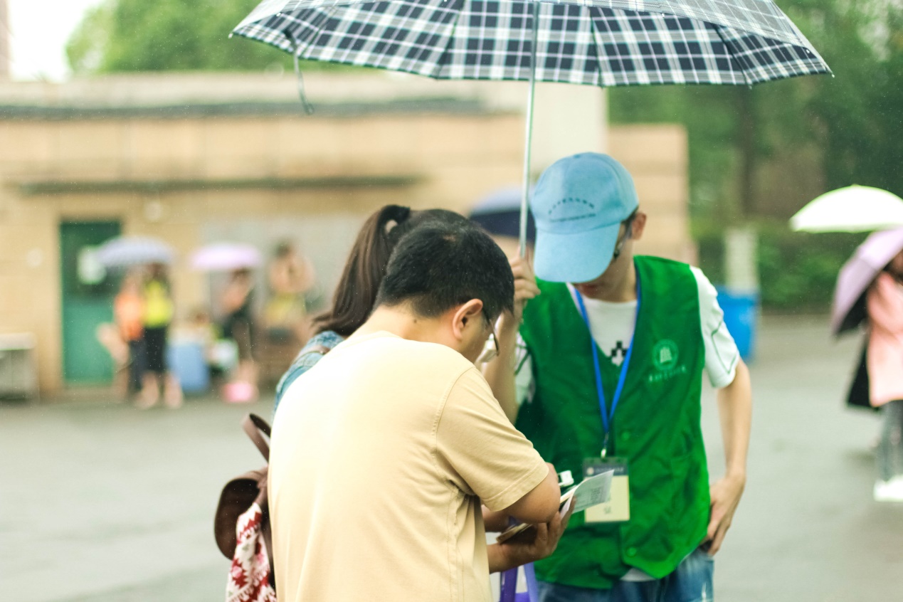 新生接待点,永利娱城app的辅导员们和大一各班班助们已经早早地开始等待新生们的到来。门口、路上、体育馆等处的志愿者身着绿色小马甲,微笑着为新生和家长指路。