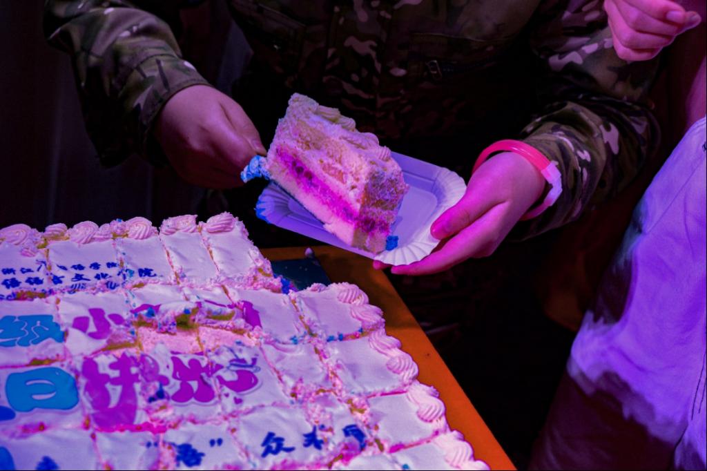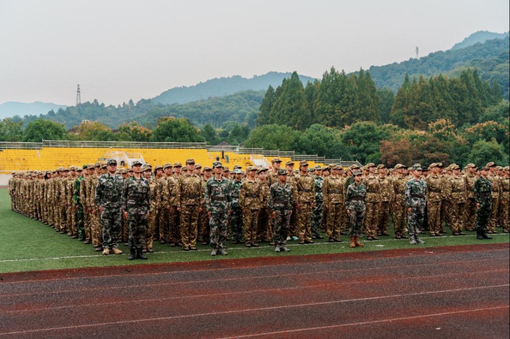 训练场上的你们,戎装加身,英姿讽爽。端腿端手的动作整齐划一,即使汗流浃背,也纹丝不动,因为一人失误,将换来全体加练的局面。高强度的训练十分艰辛,却也让我们的动作更加精进,众心更为团结。一天下来,虽然身体酸痛,却倍感自豪。第二关顺利通过!