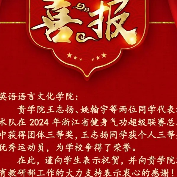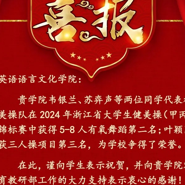 英文学子在2024 年浙江省大学生健美操(甲丙组) 锦标赛中获得佳绩!