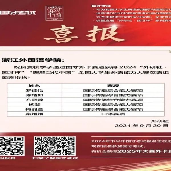 英文学子在第二届“外研社·国才杯”“理解当代中国”全国大学生外语能力大赛浙江赛区决赛中获特等奖