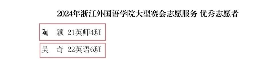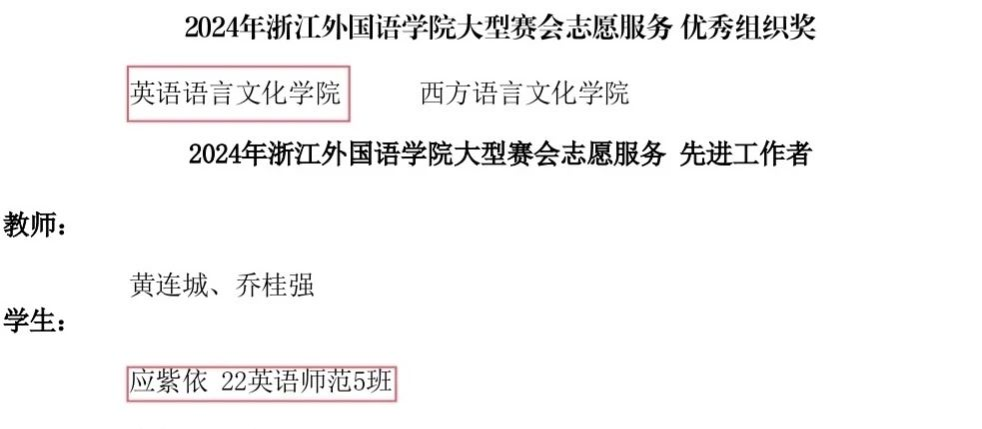 近日,永利娱城app获评2024年度学校大型赛会志愿服务优秀组织奖,22英语师范5班应紫依获评先进工作者,21英语师范4班陶颖、22英语6班吴奇获评优秀志愿者。