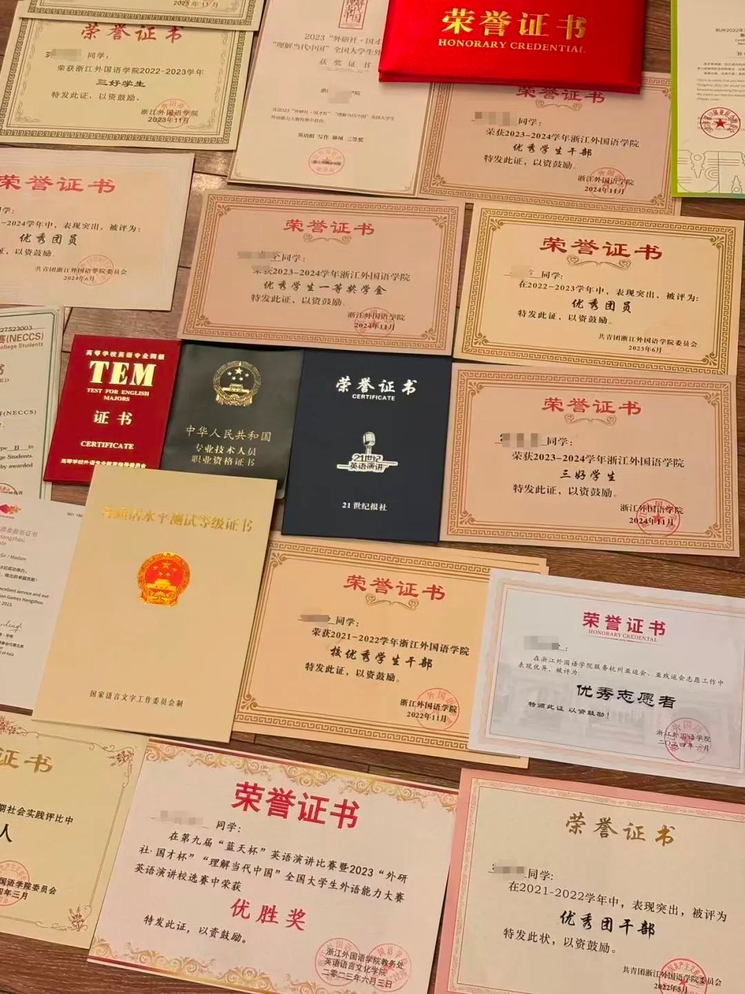 耀眼的成绩背后是优秀的学风和团结的班风。在备考阶段,同学们自发组建了学习小组,分享学习资料,互相加油打气,将孤独的备考征程走成了一群人的“长征”。大家秉承着“各有所长、共同进步”的理念,从大一入学开始,就在各类学科竞赛和学生活动中充分展示自己,四年来,班级成员们多次在"LSCAT"杯浙江省笔译大赛、韩素音国际翻译大赛、CATTI全国翻译大赛等比赛中获奖,班级专四通过率100%,用耀眼的成绩证明了自身的优秀。