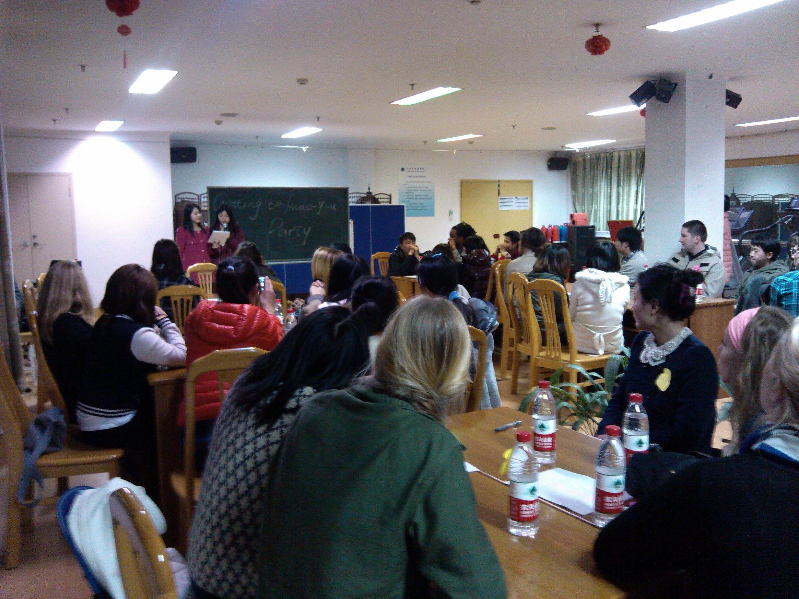 2月26日晚,英语语言文化学院国际化应用人才培养实验班的学生与美国威斯康辛大学“体验中国”项目的18位国际交换生举行了一场生动活泼的见面会。