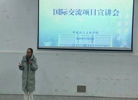 为进一步满足学生出国交流需求,拓宽国际视野,提升跨文化交流能力,11月24日晚,永利娱城app在融D108举行了国际交流项目宣讲会。国际交流与合作处副处长严伟剑、教育学院副院长王琳璞、商务英语系副主任郭安琪分别作分享,我院副院长陶伟主持。