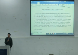 王琳璞从学校政策、课程设置、主要优势等多个方面详细介绍了我校与美国威斯康星大学河瀑校区合作的定向教育交流项目。