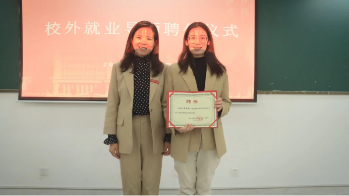 在校外就业导师聘任仪式上,张豫晋向沈诗瑶授予聘书。