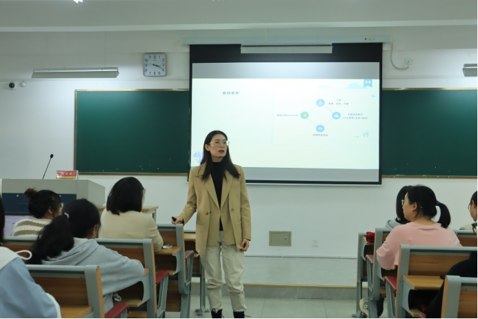 沈诗瑶从教学设计、职业规划、历程分享、教师素养几个模块出发,向在座的学弟学妹们讲述了自己在毕业前后不同时间段所面临的挑战、机遇以及积累的经验。