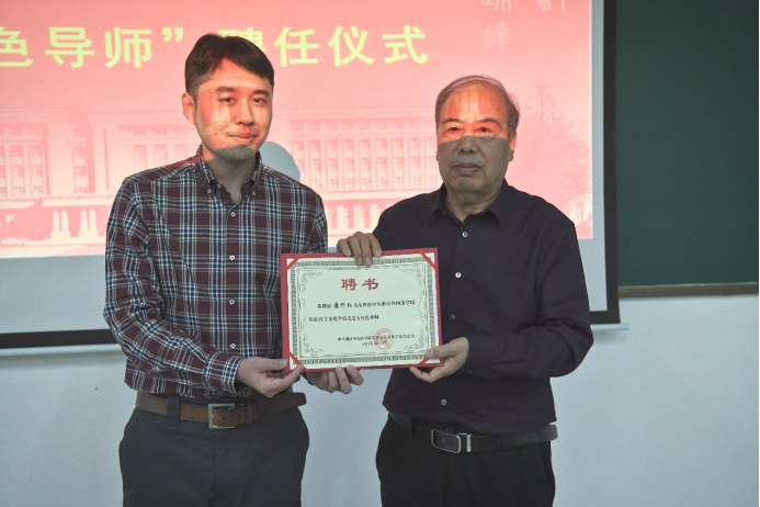 10月30日下午,“与信仰对话、与青春同行”主题讲座在融B207举行。本次讲座有幸聘请到86届优秀校友潘作仁担任主讲。我院党总支书记毛立峰出席了本次讲座,并在讲座伊始,为潘作仁颁发“红色导师”聘书。
